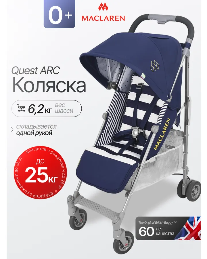 Коляска прогулочная Maclaren Quest ARC Regency Stripe синий