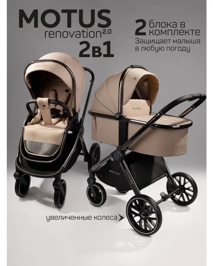 Коляска 2в1 Amarobaby Motus V2 бежевый