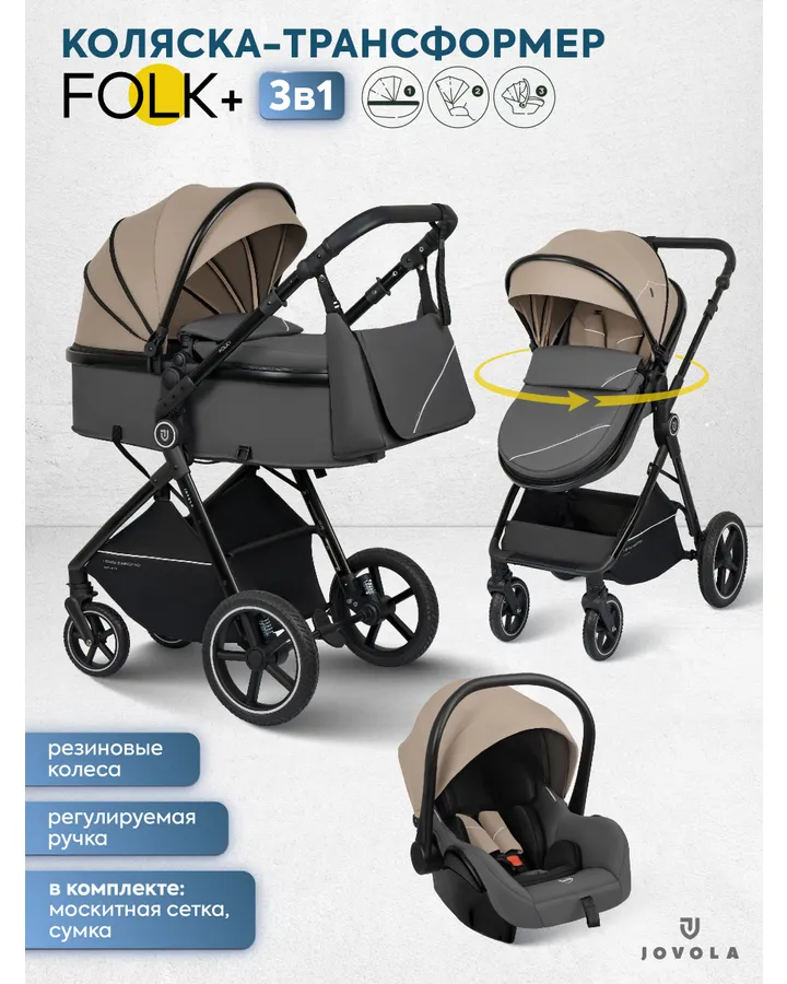 Коляска трансформер JOVOLA Folk+ 3в1 бежевый