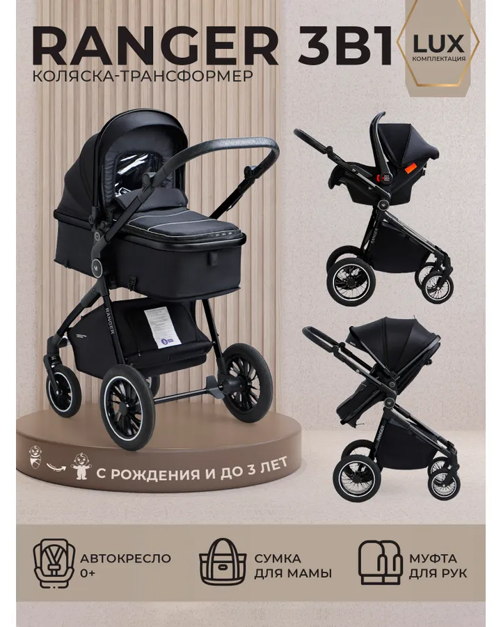 Коляска трансформер Sweet Baby Ranger Black Glossy черный