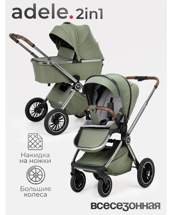 Коляска трансформер JOVOLA Folk+ 3в1 зеленый
