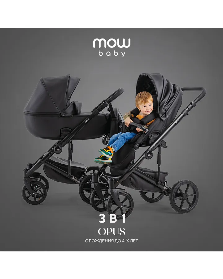 4Коляска 3в1 MOWbaby AMBER черный