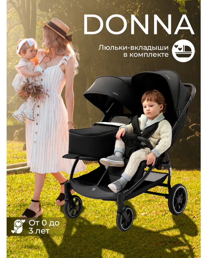 5Коляска прогулочная для двойни Sweet Baby Donna Black черныйСамая лучшая моя покупка, очень легкая, маневарная везде проходит, у меня была паровозом коляска она очень тяжелая и не поворотливая, а эта коляска маленькая и удобная, всем советую