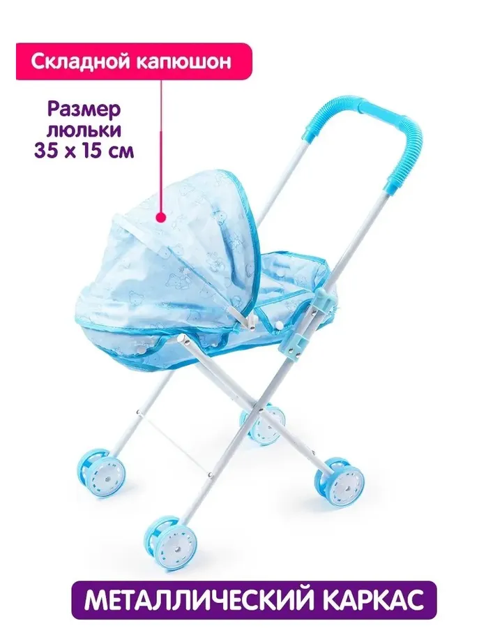 Коляска-люлька для кукол DollyToyМилая коляска, доставили в сложенном виде. Дочке (11 месяцев) понравилась. Весь вечер катала куклу в ней.