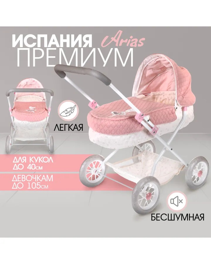 Прогулочная коляска для кукол AriasКоляска изящная, расцветка в нежных пастельных тонах