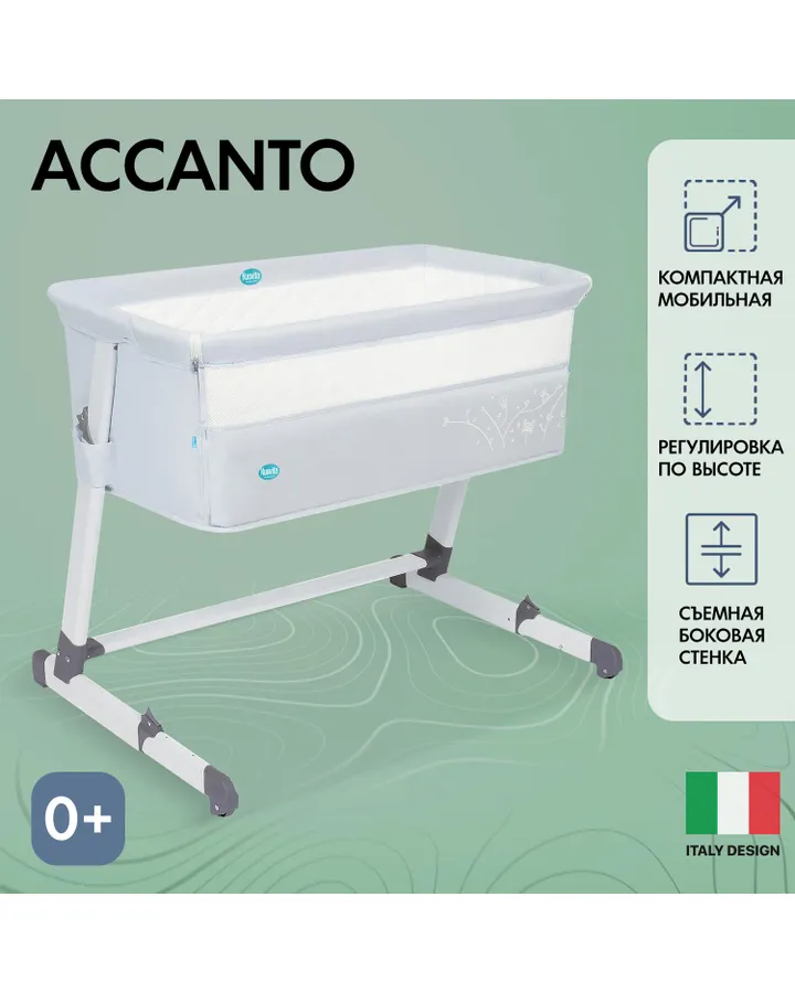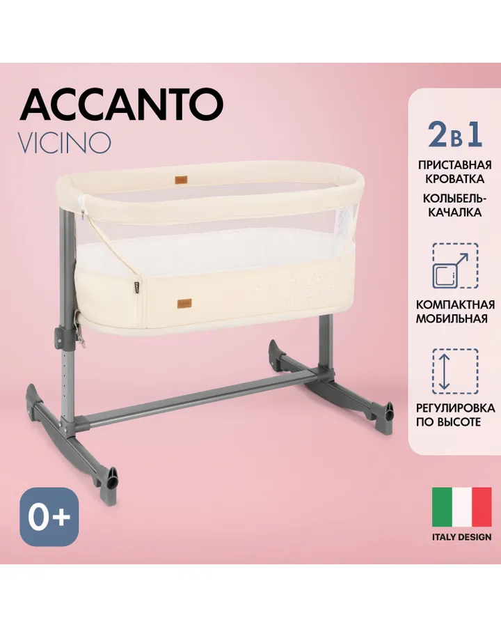 Модели Accanto и Bello подходят для совместного сна: бортик опускается, и колыбель плотно примыкает к взрослой кровати. Высота регулируется, что удобно для разных матрасов. Колеса с фиксаторами позволяют перемещать колыбель по комнате, не беспокоя малыша. Для проветривания предусмотрена москитная сетка и вентиляционные отверстия в основании.
