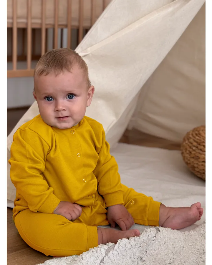 Комбинезон Моя ГорошинкаСидит классно, цвет яркий. Постирала уже 3 раза, не полинял и не окрасил другие вещи. Надевали всего 4 раза и слетела кнопка, где ножка.