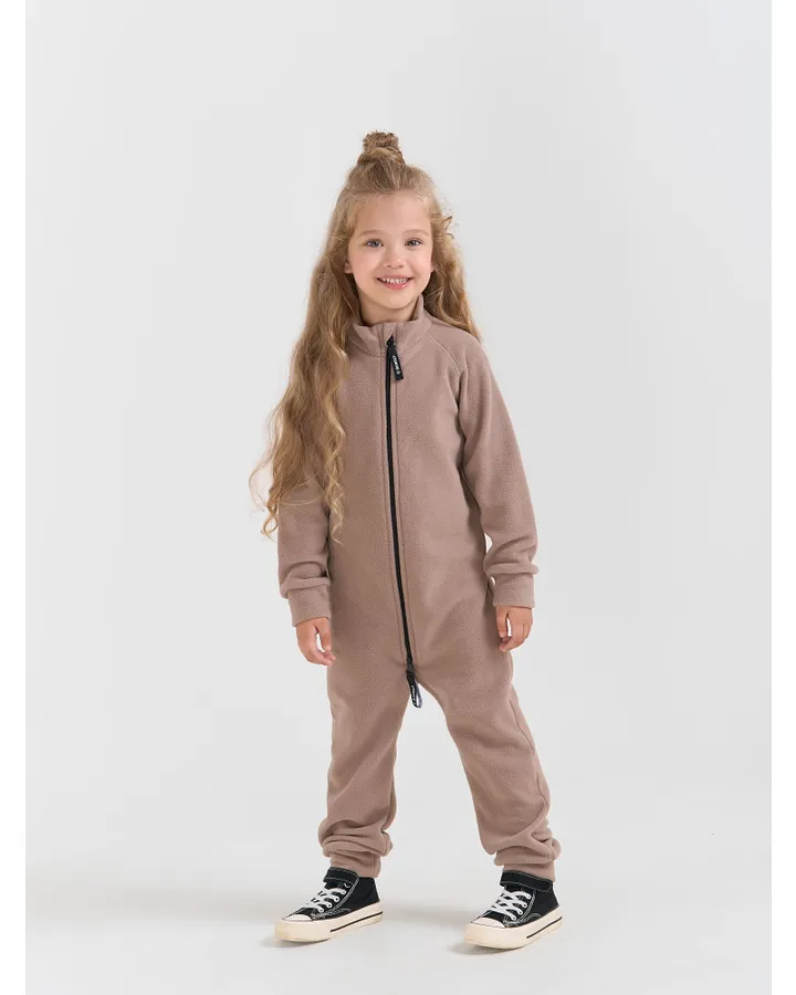 Мягкий флис, очень теплый, приятный на ощупь. На рукавах и на штанинах хлопковые манжеты. Мне кажется это удобным,т.к.прилегает к телу и не пропускает холод. Единственное -нет петельки для крючка,с ней было бы ещё лучше))