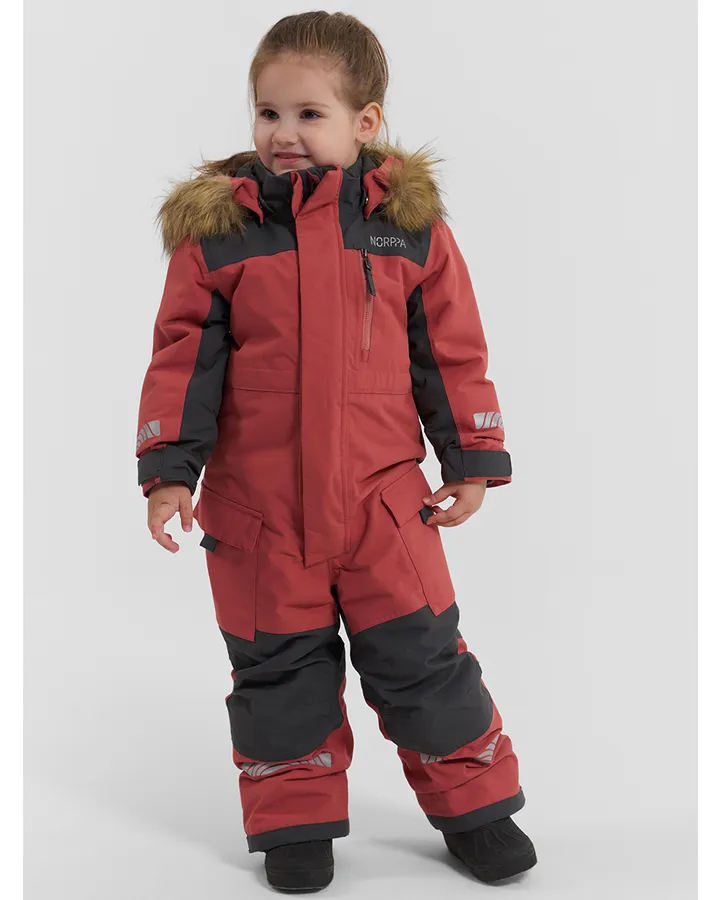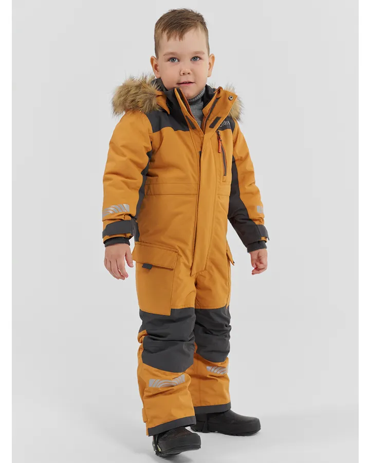 Тёплый, красивый, удобный. На рост 134 взяли размер 146. Есть небольшой запас. Мех не отстегивается, карман только с одной стороны. И нет резинок внизу штанин. А так очень понравился