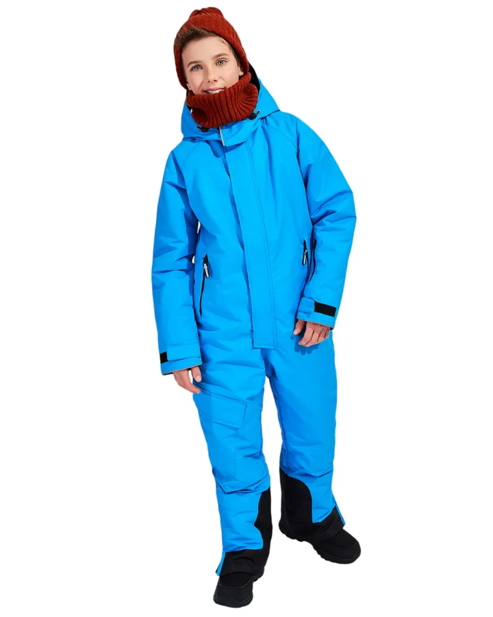 Комбез на вид очень теплый,область колен и шов сидения проклеены, есть кармашек для скипаса, манжеты с прорезью для большого пальца, думаю на лыжах гонять будет удобно