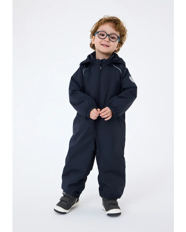 Отличный качественный комбинезон. В -5 с тёплой одеждой ребенок не холодный.Легкий дождик выдерживает, ну уж если в лужу упал, то по швам мокро. Размеру соответствует. На 86 брала 92 с запасом. Относили 2 сезона. Сейчас младший носит. Воротник выполнен так, что не нужен снуд, это очень удобно. Однозначно рекомендую.
