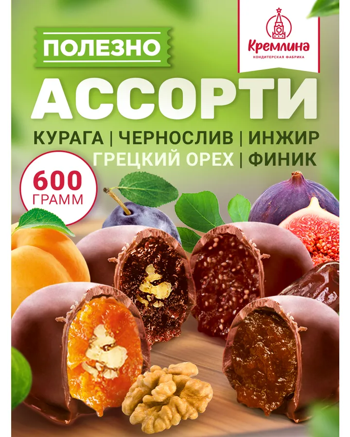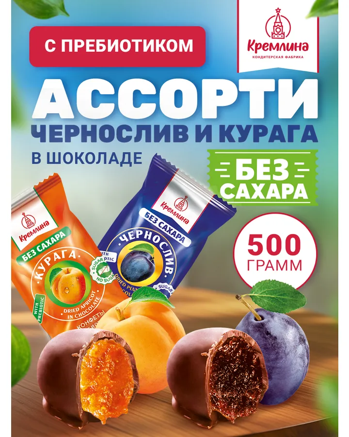 Конфеты шоколадные без сахара Кремлина Ассорти Чернослив и Курага 500г