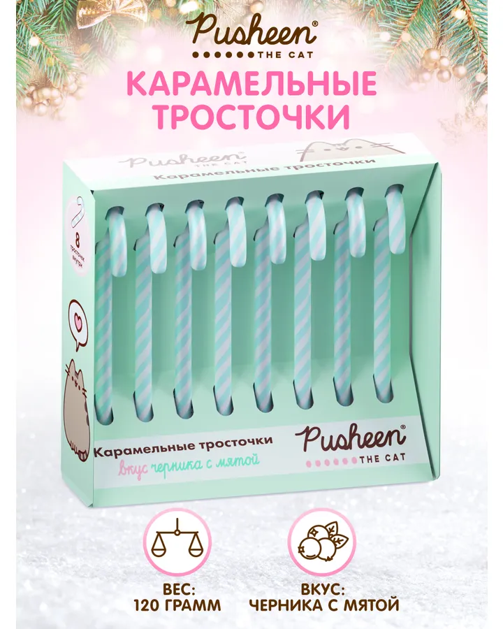5Карамельные тросточки Сладкая сказка новогодний набор Pusheen 8 штук 120 гХорошая карамель. Пришло все целое и с хорошими сроками. Спасибо!