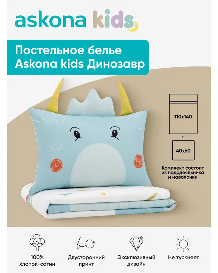Комплект постельного белья askona kids Динозавр 2 предм.