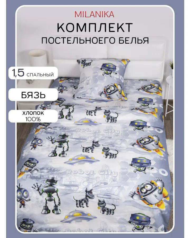 Комплект постельного белья MILANIKA Грузовичок полутораспальный 3 предм.Отличный товар