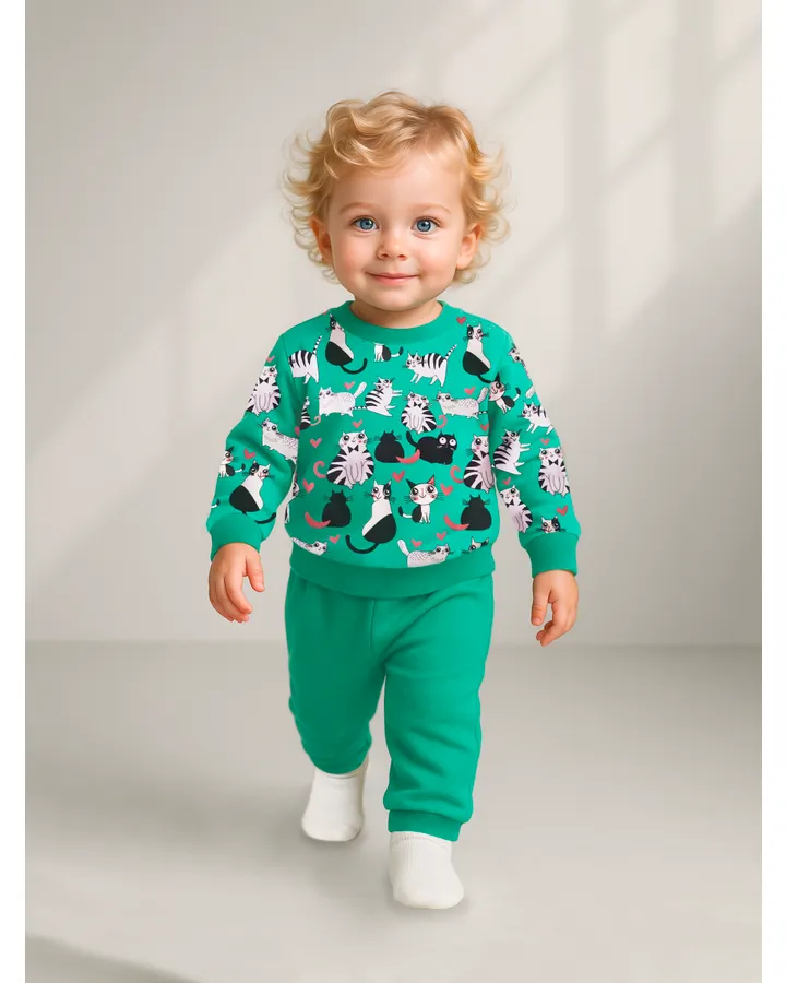 Костюмчик на небольшом флисе . Заказала из-за цены( срочно нужны были костюмы) когла забрала товар , принт не понравился, как будто собаки мертвые , а не спят😬