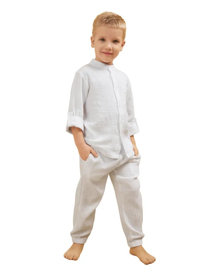 Отличный домашний костюм . Для мальчика найти тонкие штаны проблема. Любят играть на полу, коленки закрыты, тонкие- не жаркие. С футболкой с коротким рукавом то что надо, для дома) Не линяет, не сел.