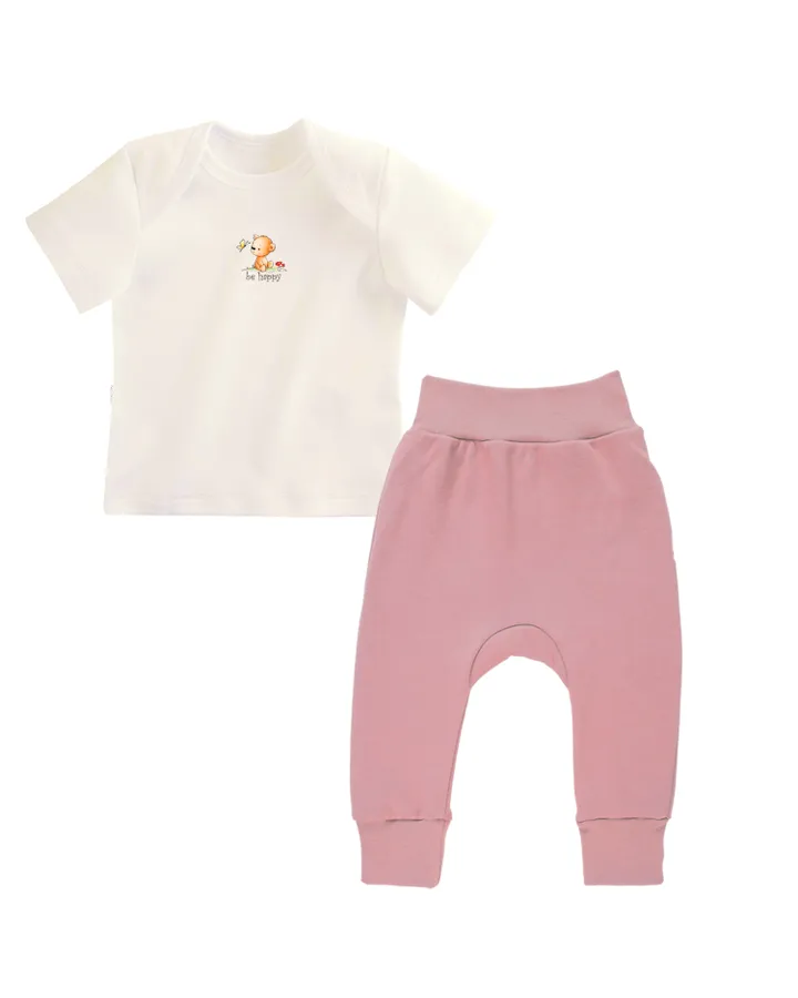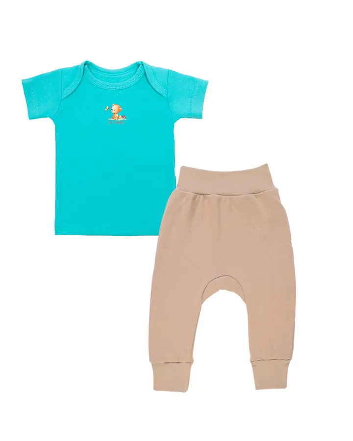 5Комплект Наша МамаСупер комплект! Футболочка длинная, удобно заправлять в штанишки (если нужно). У штанов широкая не тугая резинка, при этом сидят штаны надежно, не потеряются :) ну и в целом комплект приятных цветов, качественный, все швы аккуратные, нигде ничего не торчит. Носим каждый день, пачкаем, все хорошо стирается и не портится.