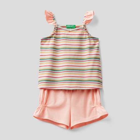 Комплект United Colors of BenettonОтличный комплект, качество хорошее, шорты очень нежные и цвет и ткань. Модель как на фото. Дочке понравилось.