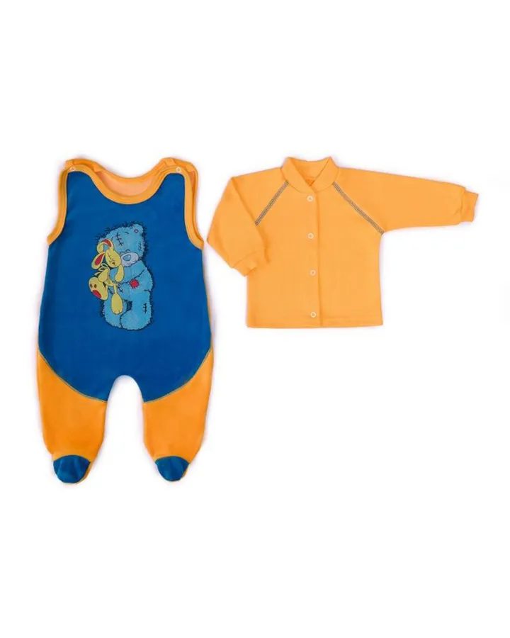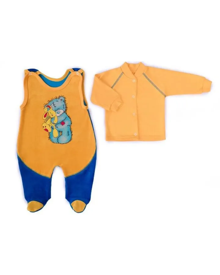 Немного маломерит. Прикольный комплектик - заказывала два в разных расцветках на подарочек близнецам, следом заказала еще и своему карапузу. Плотненькая кофточка, велюровые штанишки - на прохладные летние вечера. Единственное - рисунок-трансфер, после нескольких стирок наверняка облезет... поэтому снимаю звезду.