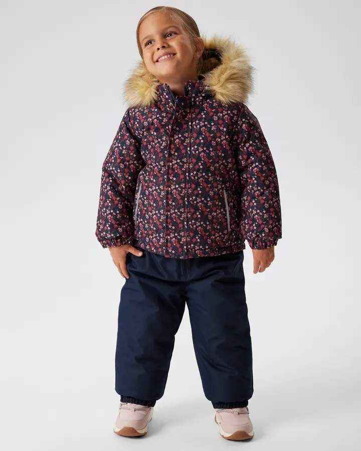 Очень понравился комплект Копюшон не отстегивается, а мех отстегивается Резинки на брюках регулируются и снимаются полностью Действительно зимний набор Мех очень мягкий, как-будто настоящий