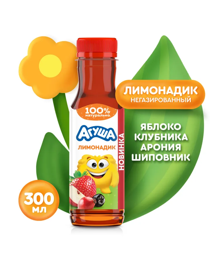 Лимонадик Агуша яблоко-клубника-арония-шиповник 0.3л с 3лет