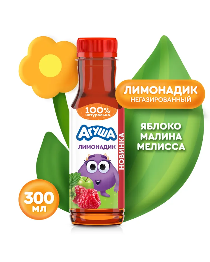 Лимонадик Агуша яблоко-малина-мелисса 0.3л с 3лет
