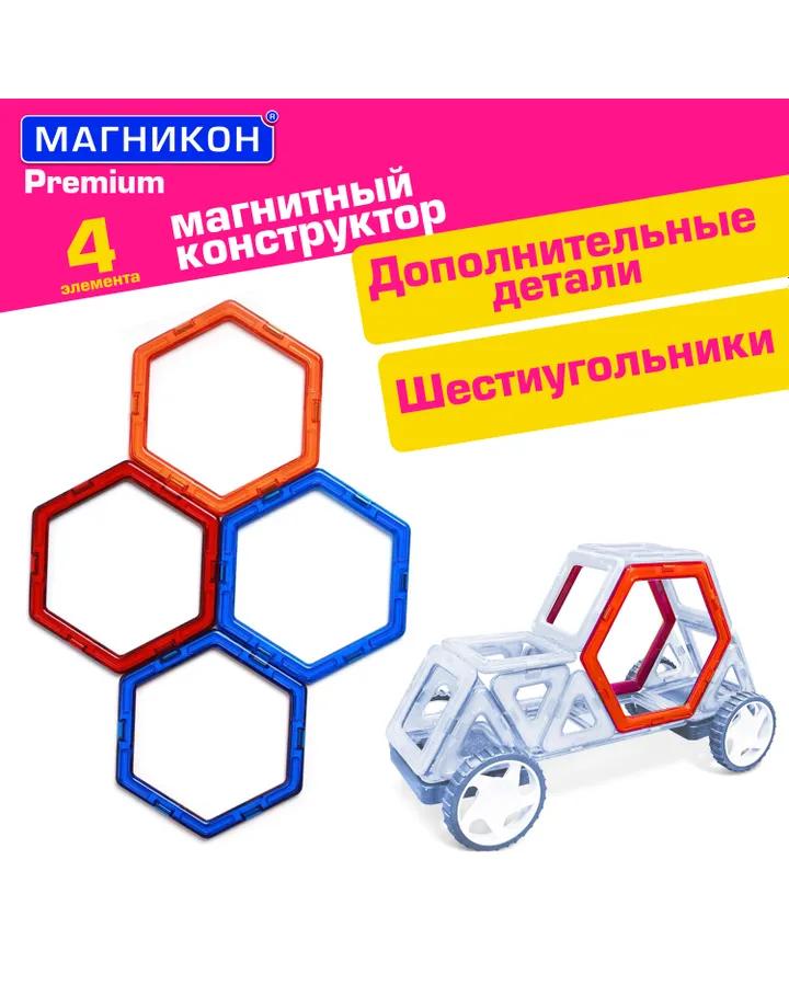 Конструктор МАГНИКОН Шестиугольник магнитный 4 дет.
