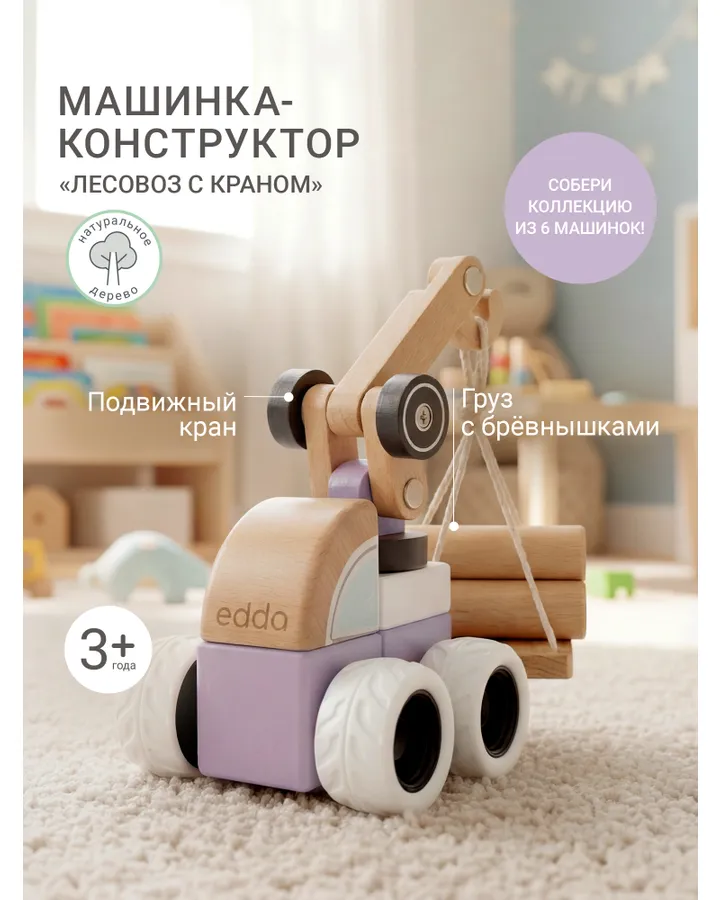 5Конструктор edda Пожарная машина деревянныйОтличная идея - совместимость деталей разных моделей! Новые возможности для фантазии!