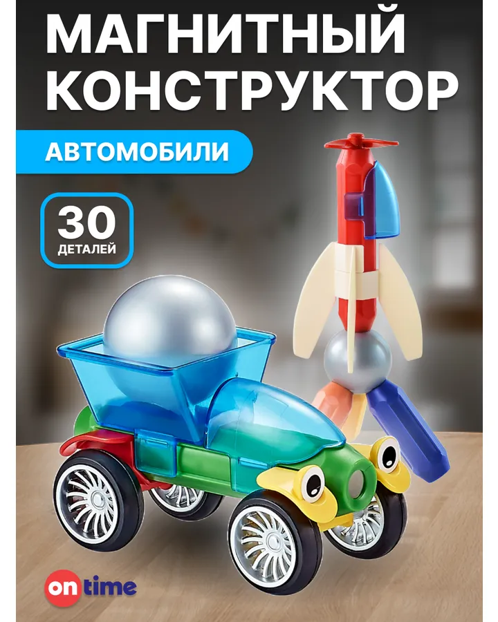 Конструктор ON TIME Автомобили магнитный 30 дет.