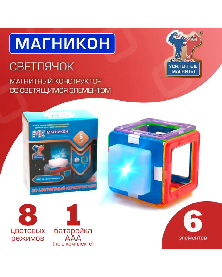Конструктор МАГНИКОН Прямоугольник магнитный 4 дет.