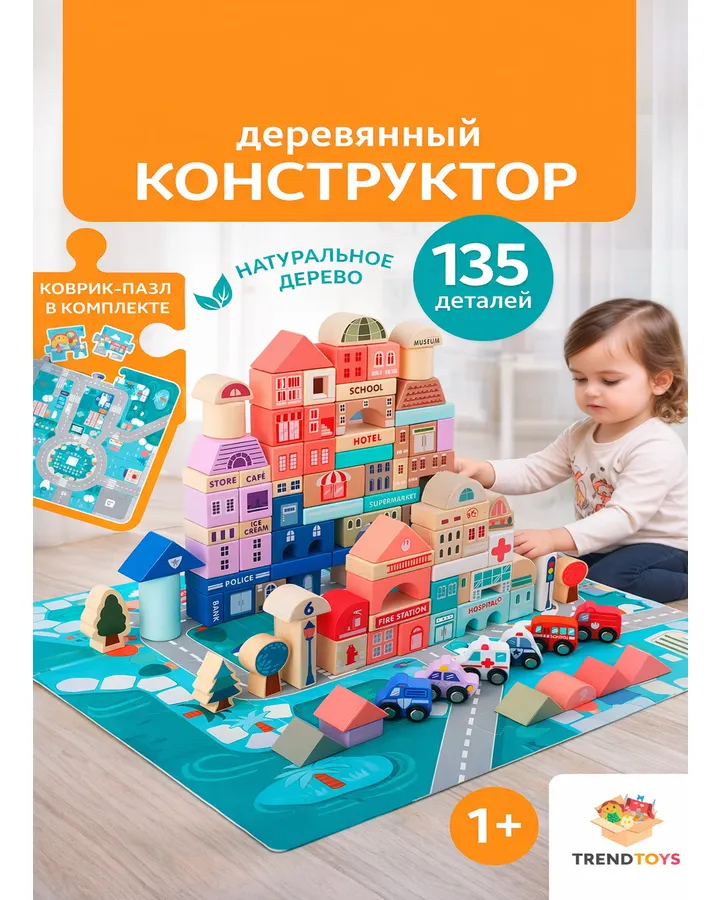 Конструктор TrendToys для малышей деревянный 135 дет.Очень понравился конструктор по качеству , интересный, хорошо выполнен, красивый к тому же. Удобный кейс и мешочек для хранения есть в комплекте