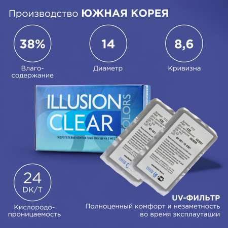 Контактные линзы ILLUSION clear на 3 месяца -4.50/14/8.6 2 шт.Нормальные
