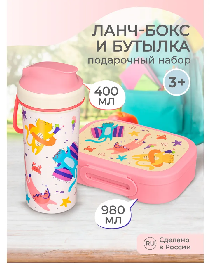 Ранее покупала такой же с динозаврами для старшей внучки для перекусов на продлёнку, теперь купила с пляжными котиками для младшей внучки, все довольны, и я довольна, мне ооочень нравится этот контейнер.