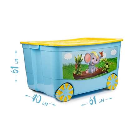 Ящик для игрушек 66,5л Пластишка На колесах, светло-голубой