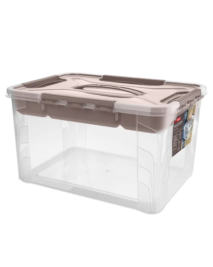 Ящик для хранения Econova универсальный с замками, ручкой вставкой Grand Box 20 л коричневый