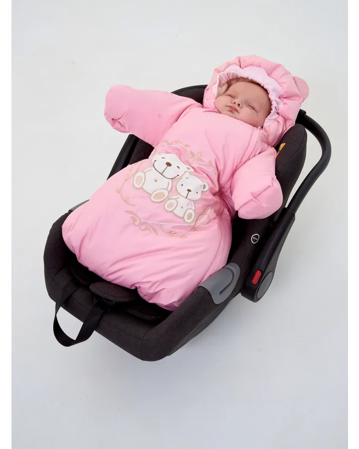 5Конверт в коляску Осьминожка Мишки розовыйКачественный комбинезон.Подкладка съемная.Рукава по желанию можно закрыть.