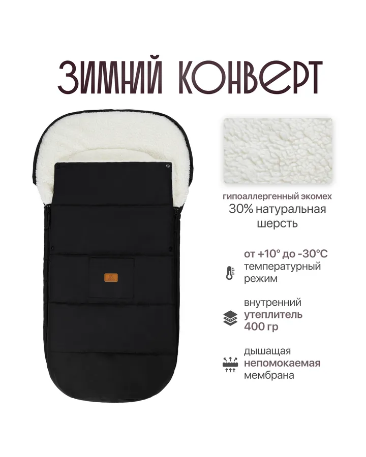 5Конверт в коляску зимнийКонверт потрясающий. Плотный, ткань хорошая. Сверху затягивается. Очень рекомендую
