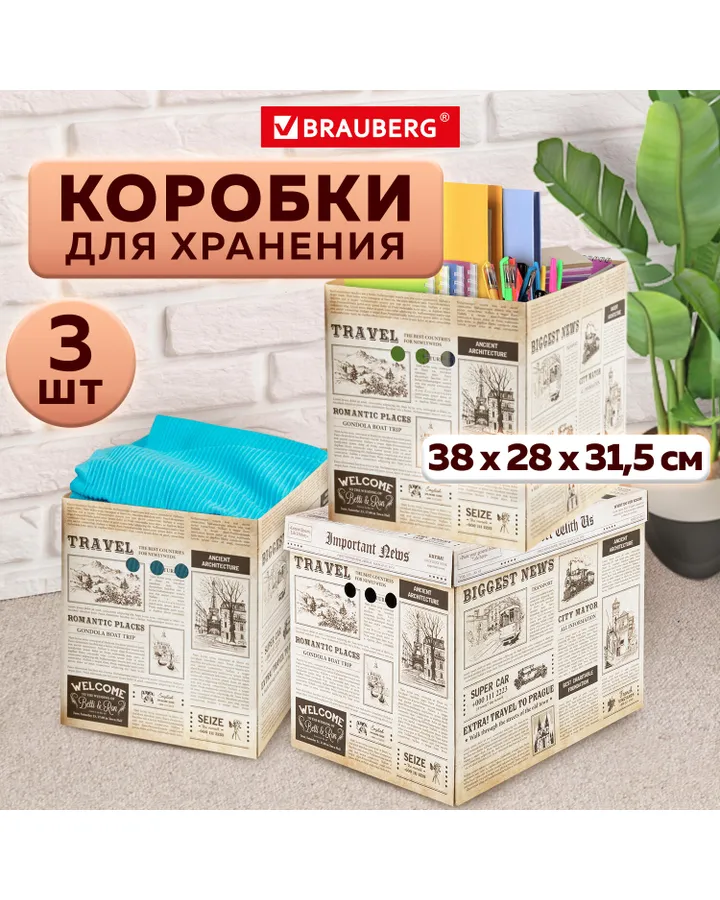 5Коробки картонные Brauberg для хранения вещей с крышкой 3 штукиОтличные коробки! Очень удобные и стильные.