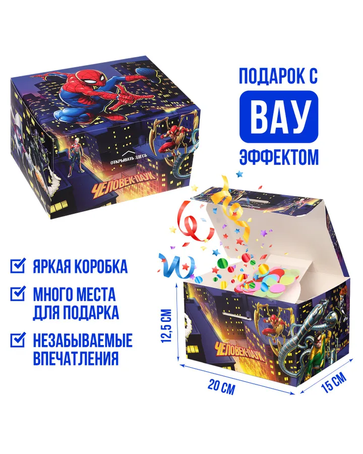Большая, яркая коробка🌟 идеально для тех кто сам собирает сладкий подарок) или может поместиться небольшая игрушка.