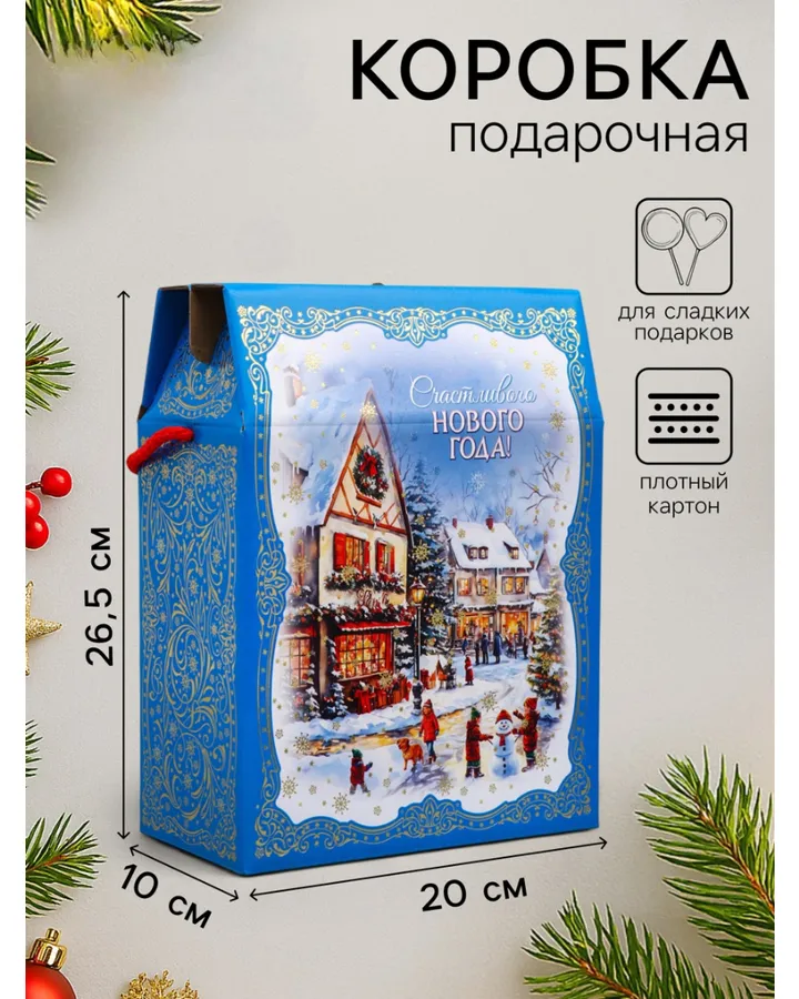 Сборная коробка-конфета Дарите Счастье \"Новогодняя деревушка\", 18 х 28 х 10 см