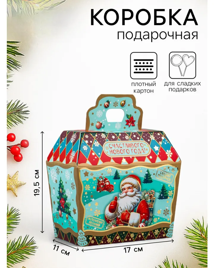Коробка Новогодняя подарочная Sima-Land \"Исполнения желаний\", 19,5 х 17 х 11 см