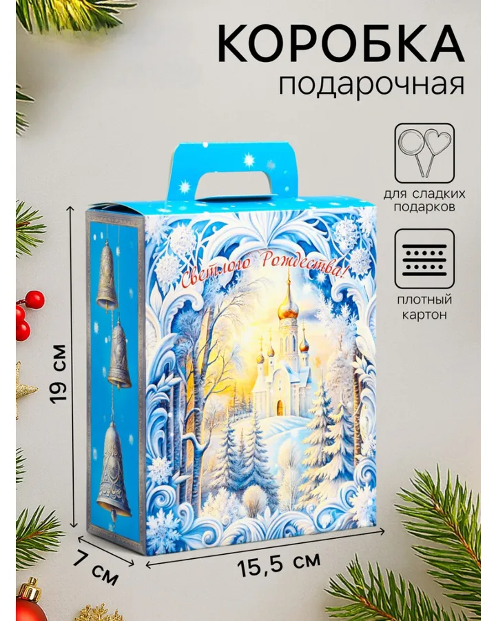 Подарочная коробка Sima-Land \"Рождественский звон\", 15,5 х 7 х 19 см