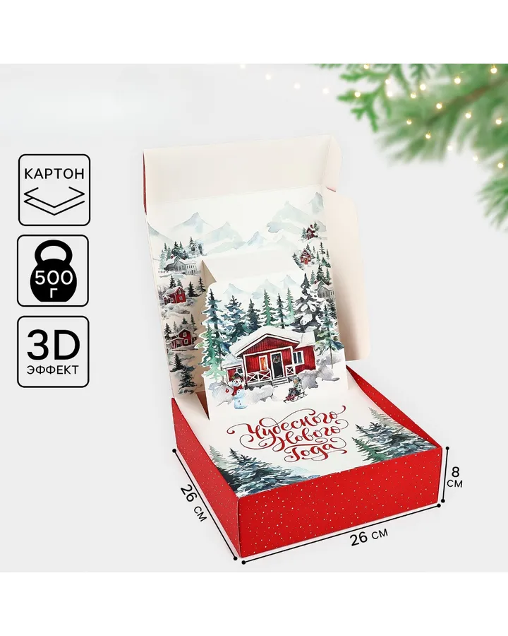 Коробка складная Дарите Счастье \"Зимних чудес\", 26 х 26 х 8 см