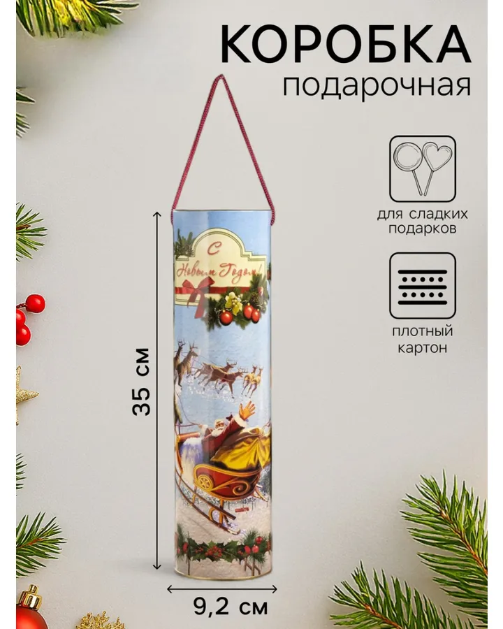 Подарочная коробка, тубус Sima-Land тубус под бутылку «Санта», 92 х 350 мм