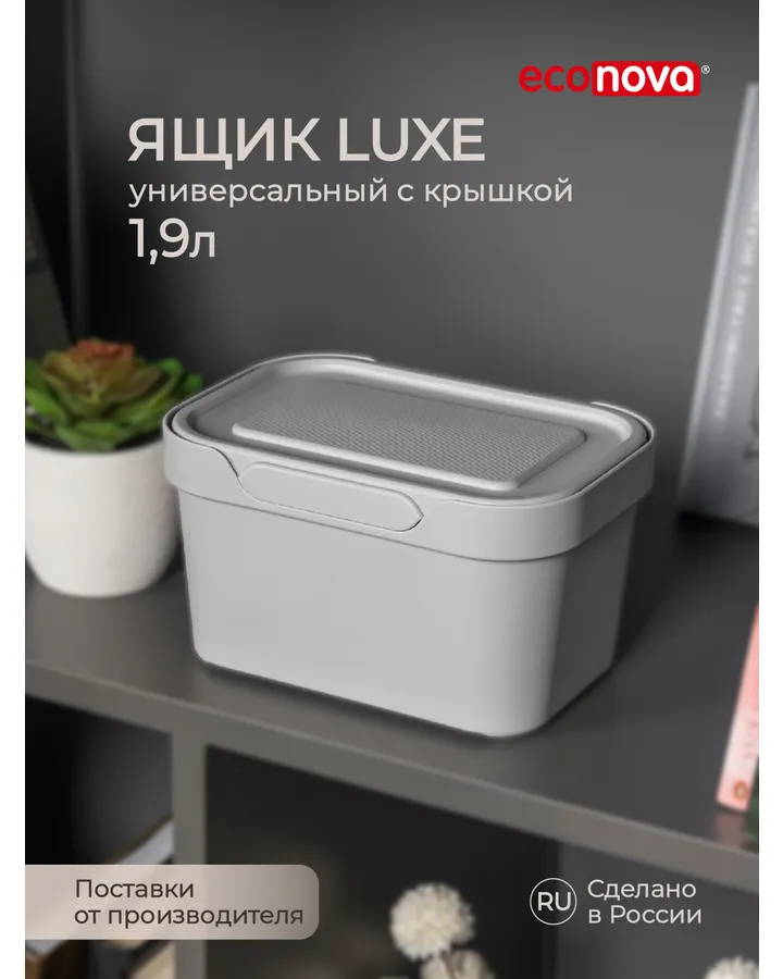 Коробка Econova с крышкой LUXE 1.9л Светло-серый