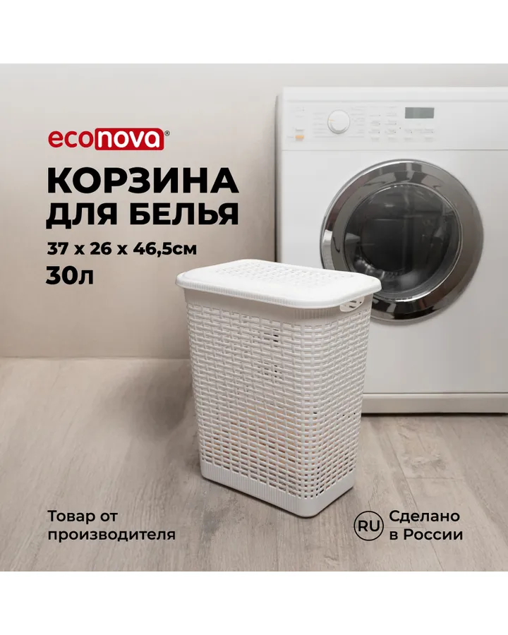 Корзина для белья Econova 30л 370х260х465мм белый