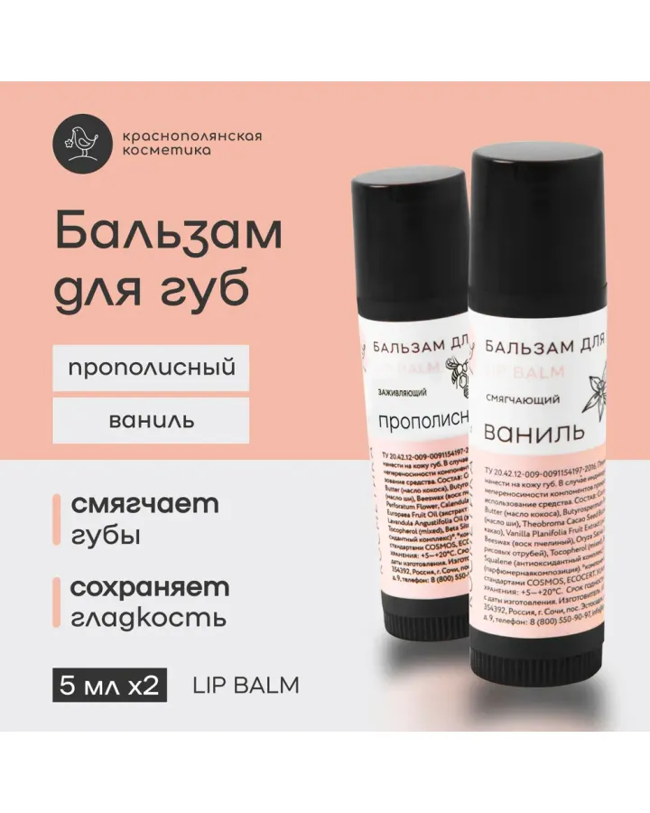Набор бальзамов для губ Краснополянская косметика Ванильный прополис
