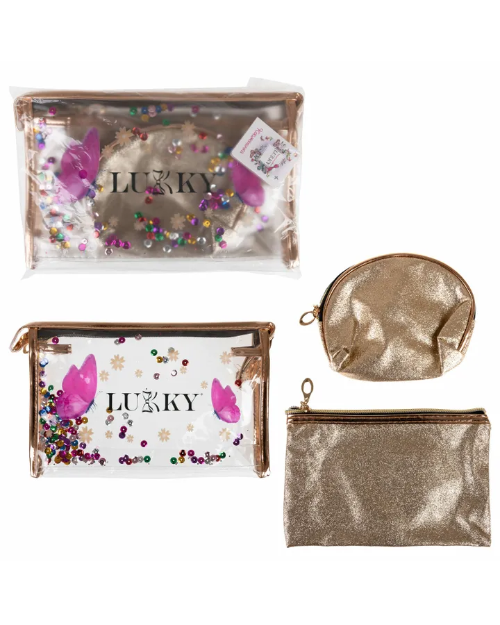 Косметичка женская набор 3 шт LUKKY Glam Trio прозрачные с подвижными блестками