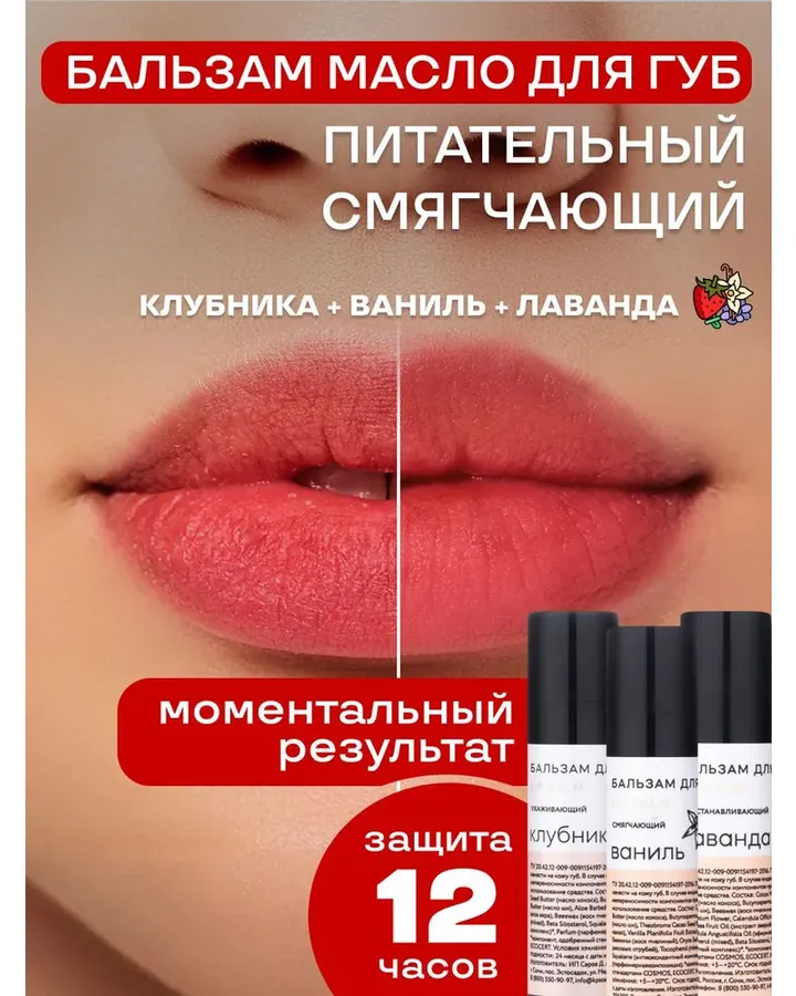 Набор бальзамов для губ Краснополянская косметика клубника ваниль лаванда